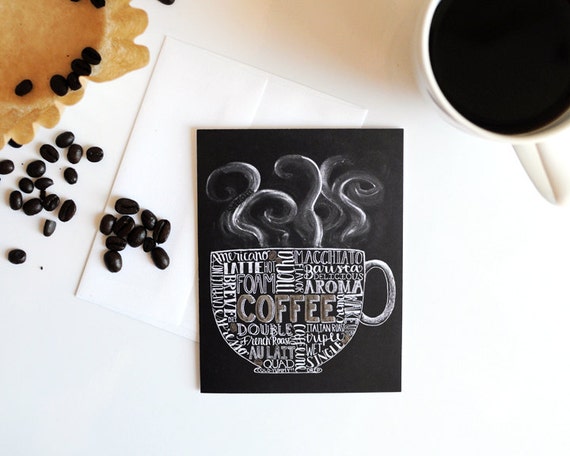 Coffee Card Coffee Gift Coffee Mug Coffee Art Subway Art Chalk Typography Hand Lettering Chalkboard Card Chalkboard Art Chalk Art Etsy